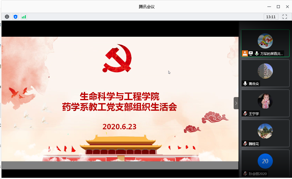 2020-07-062020年6月23日,药学系教工党支部以腾讯会议的形式开展了一次组织生活会。每位党员以自己或身边人的亲身经历,讲述了一个个感人的抗疫小...