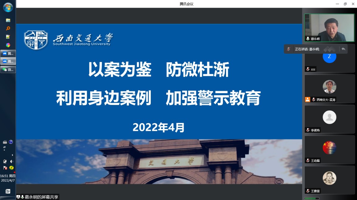 2022-04-112022年4月7日, 香蕉视频 生物工程系教工党支部在线上开展师德师风警示教育活动,学院党委书记葛永明参加并开展了“以案为例,...