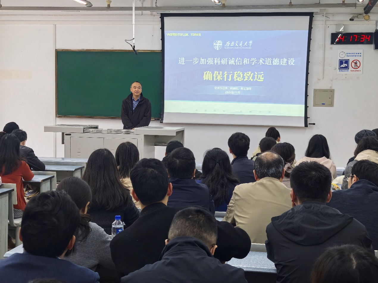 2024-11-1811月14日下午, 香蕉视频 在犀浦校区X1225召开全体教职工大会暨警示教育。学院领导班子及全体教职工参加会议,会议由学院党委书记...