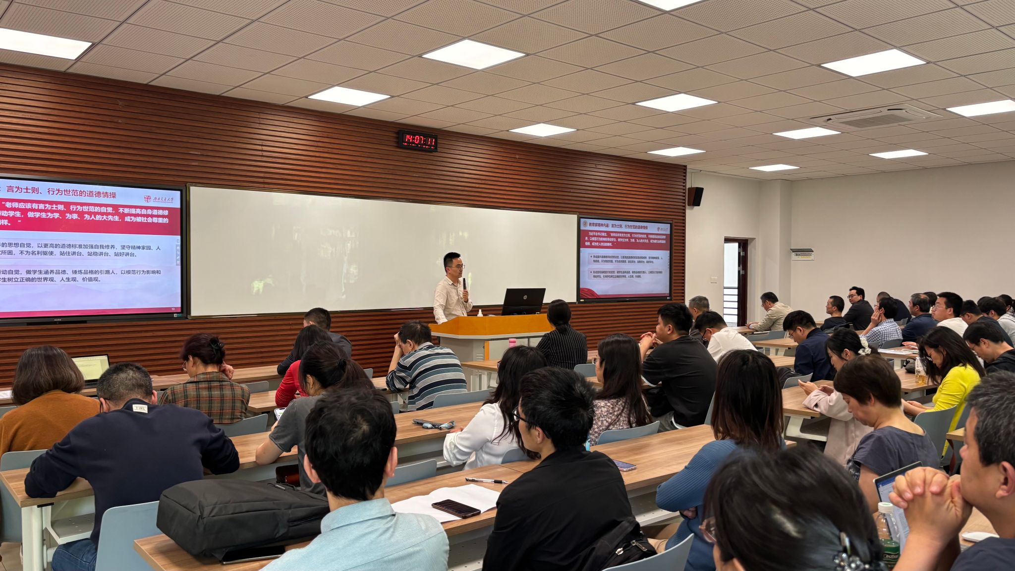 2025-04-264月24日下午,生命学院在犀浦校区X1201召开全体教职工大会暨师德师风教育宣讲会。会议由党委书记黄春蓉主持,学院全体教职工参加了会议。...