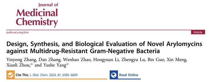 为第一单位,以“Design, Synthesis, and Biological Evaluation of Novel Arylomycins against Multidrug-Resistant Gram-Negative Bacteria”为题,发表在药物化学顶级期刊《Journal of Medicinal Chemistry》上,论文第一作者为周先礼教授指导的博士研究生张银勇,通讯作者为 香蕉视频