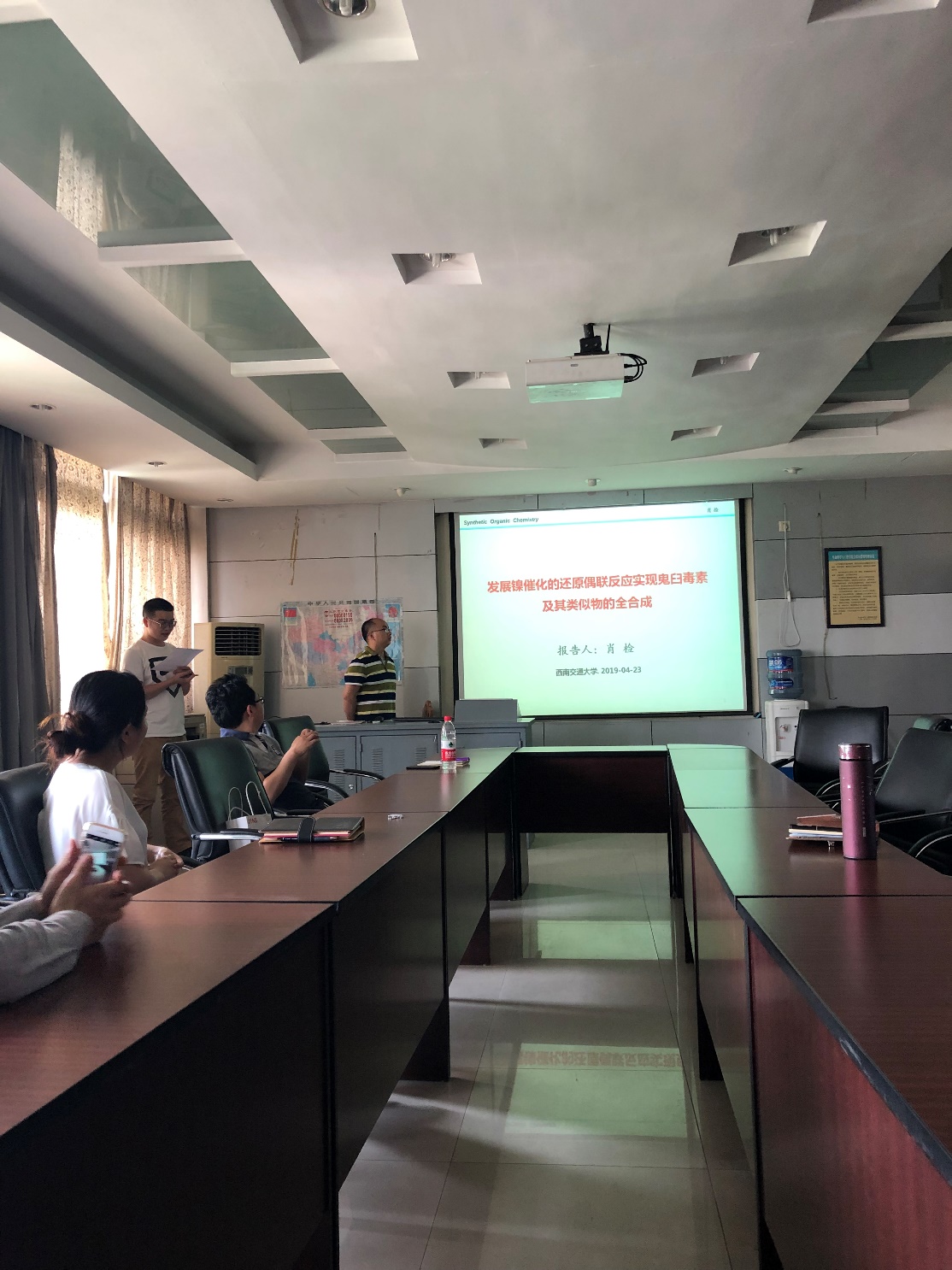 肖检老师的报告题目为“发展镍催化的还原反应实现鬼臼毒素及其类似物的全合成”,他首先介绍了目前鬼臼毒素天然产物的全合成策略,并提出了该天然产物合成的难点。其次,结合课题组研究方向,成功发展了镍催化还原反应方法学策略,通过官能团简单转化,高效全合成鬼臼毒素天然产物及其类似物。随后,万瑜老师介绍了基于多肽的非病毒基因传递载体的构建与评价,拓展了大家对于基因治疗的认识。本期的青年教师学术沙龙圆满落幕。