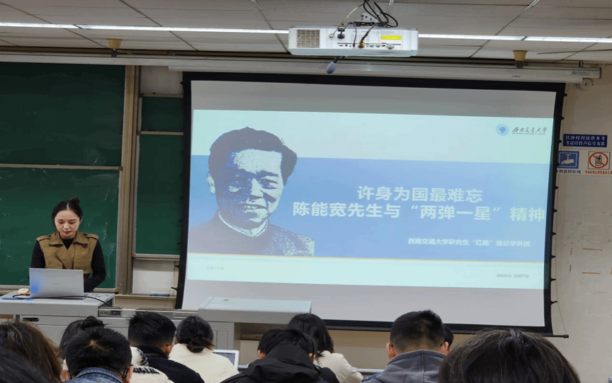 校友、“两弹一星”功勋奖章获得者陈能宽院士的生平事迹和所获成就。通过学习,同学们了解了陈能宽院士从出国求学、扬名海外到毅然回国、科技报国的经历。最后何佳乐号召同学们学习陈院士不畏艰辛、淡泊名利、甘于奉献的许身为国精神。