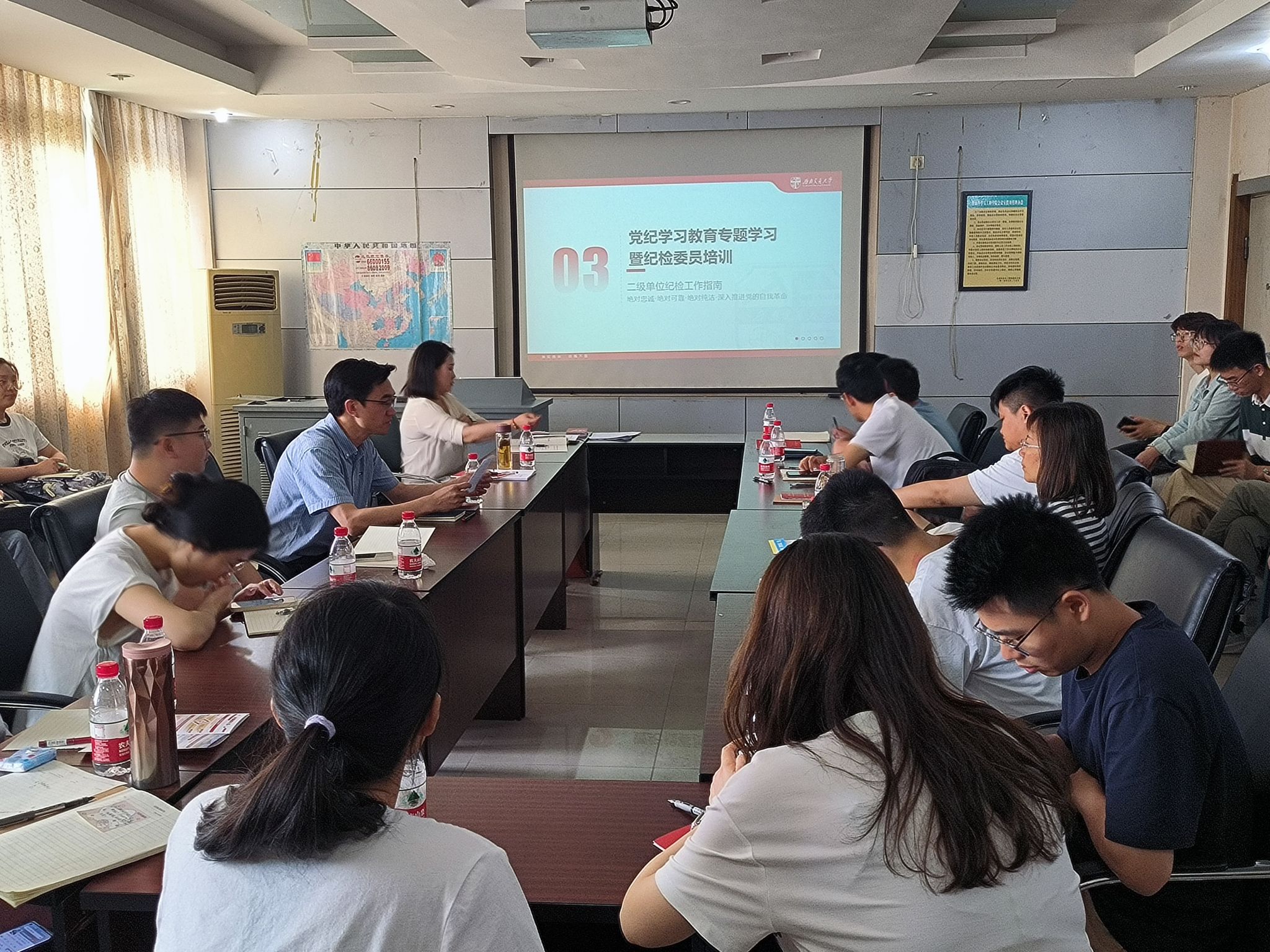 第二阶段,学院党委副书记、纪委书记朱炜面向所有支部书记及支委会委员开展纪检工作专题培训。朱炜围绕纪委的职责、高校纪委的主要任务、纵深推进新征程纪检监察工作高质量发展的“八个‘突出’”工作任务、学校二级纪检组织履行监督责任“6+X”任务清单、纪检组织和干部履责方式和履责纪律等几方面开展了讲解。朱炜强调,各支部委员会,特别是纪检委员要落实好党内监督的工作职责,强化经常性纪律教育,把日常监督做实做细,以党规党纪为准绳,坚持党性党风党纪一起抓。