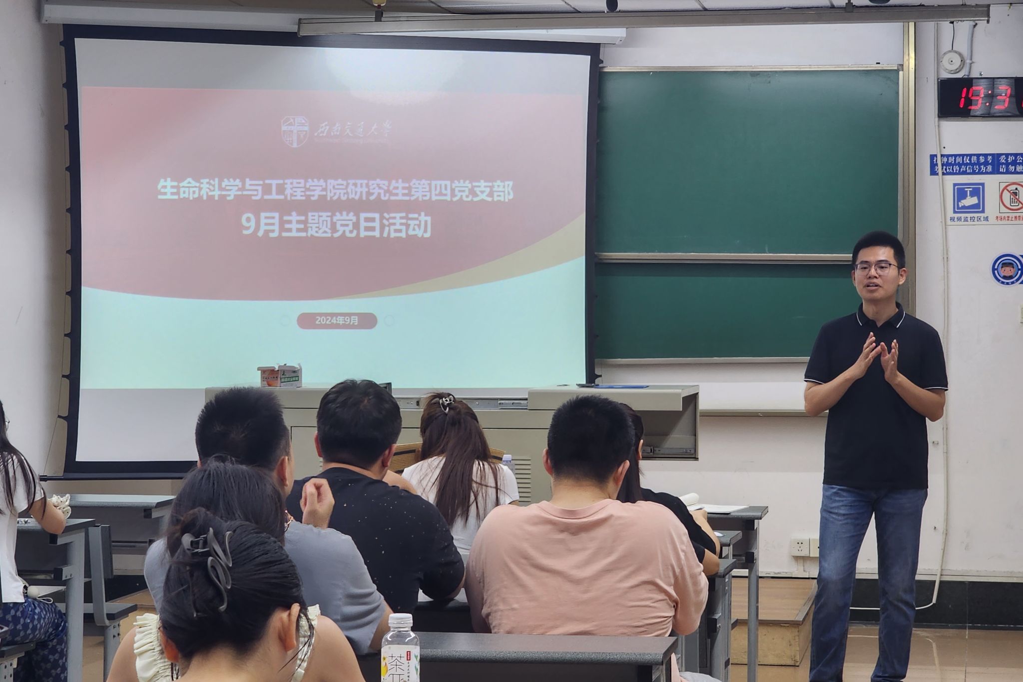 9月8日晚上,研究生第四党支部于九里校区逸夫楼4304A教室开展主题党日活动。活动内容包括:深入学习贯彻党的第二十届中央委员会第三次全体会议精神,分享交流暑期社会实践见闻感悟,“心怀皓月,致敬恩师”感念师恩教师节特别活动。本次会议由党支部书记黄斌翰老师主持,支部全体成员及2024级新生党员、入党积极分子参与。