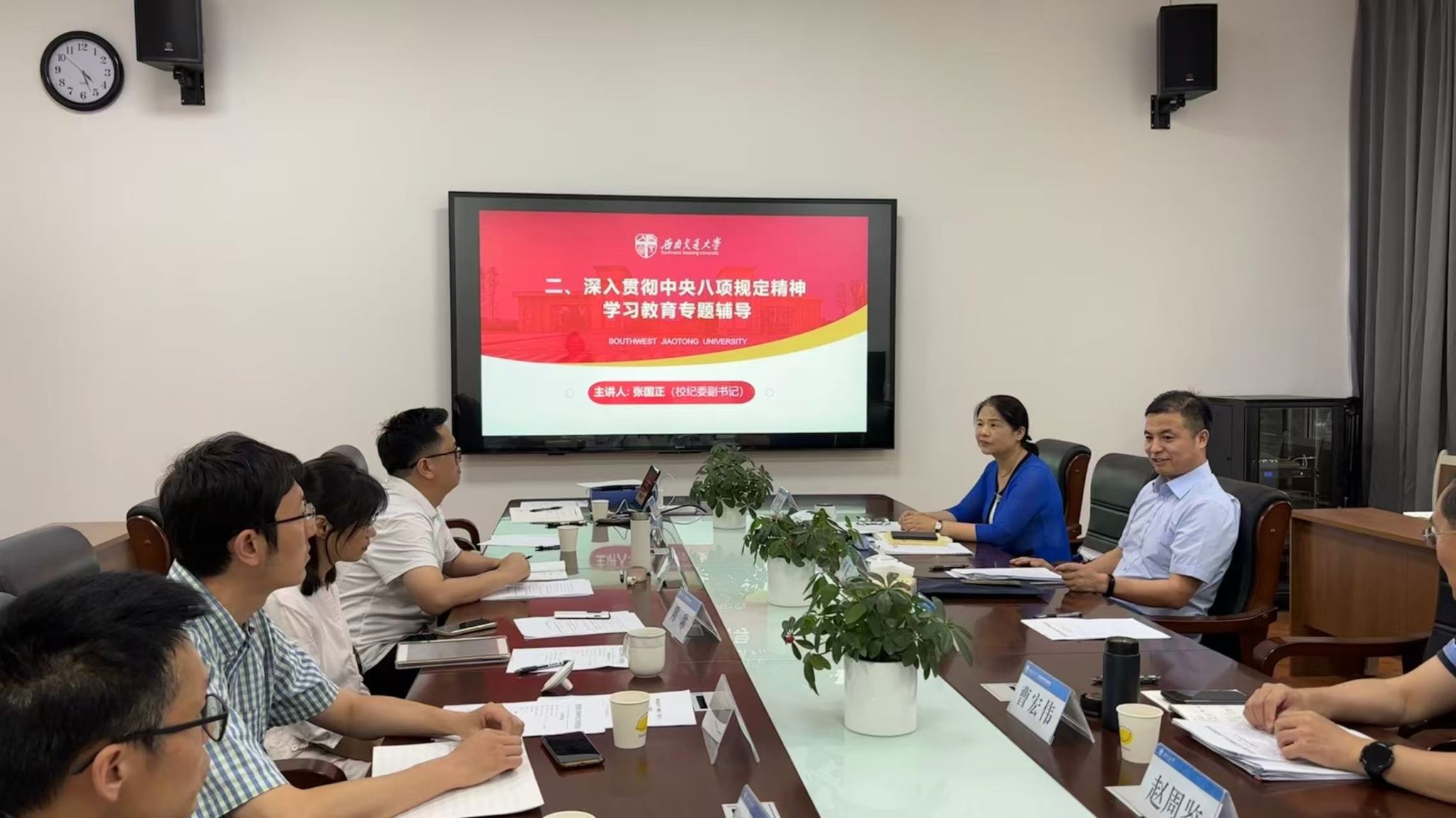 6月4日下午,生命学院党委理论学习中心组在犀浦校区2314会议室进行2025年第5次集体学习(扩大),邀请校纪委副书记张国正进行深入贯彻中央八项规定精神学习教育专题辅导,并开展坚定不移贯彻总体国家安全观专题学习。学院领导班子成员、党委委员、纪委委员、教工党支部书记及科职领导干部参加了学习会,会议由党委书记黄春蓉主持,党建工作联络员曹宏伟列席指导。