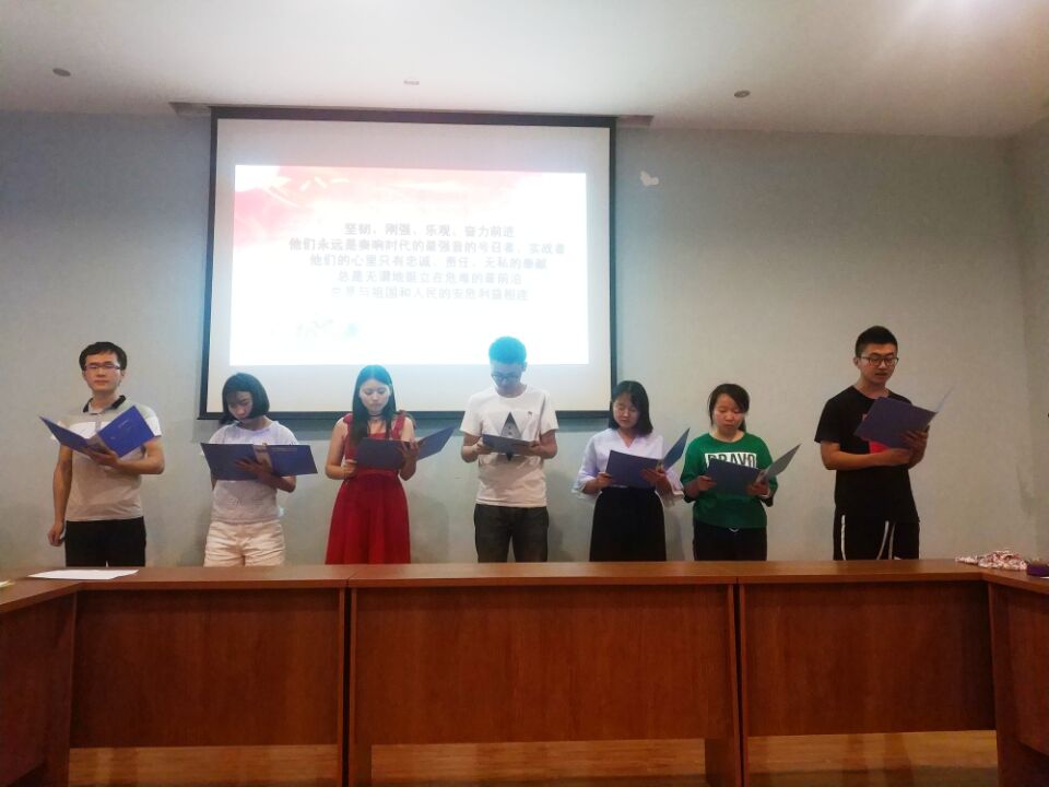 第三篇章中,党员同志们朗读的诗词是《永远不倒的钢铁长城》,该首词诉说了包括南昌起义、井冈山革命根据地的建立、秋收起义等诸多重要历史事件,全面展现了党领导人民军队浴血奋战、为争取和平做出巨大奉献的英雄壮举。尽管该小组选择了个人朗诵的形式,但每位成员的朗读都声情并茂,情感充沛,使在场的各位听众都深受感染。最后一个篇章中,党员同志们朗读的诗词是《中国梦强军梦》。该首词没有浮夸式的赞歌,却朴实地发出了真打实备、改革强军的呐喊,叩击着每一位听众的心灵。
