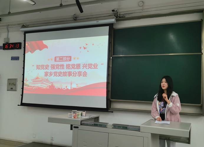 紧接着为寒假期间支部成员对家乡红色历史的寻觅学习进行分享展示。党支部成员在寒假期间对自己家乡红色历史进行的学习寻觅,对红色纪念地进行的探寻走访,在会议上以故事讲述、感悟分享、告白等方式进行展示。从各位成员的分享中,大家了解到了一个又一个红色事迹,诸多革命前辈的光辉历史就发生在身边,深刻感受到了党史和我们之间的距离。