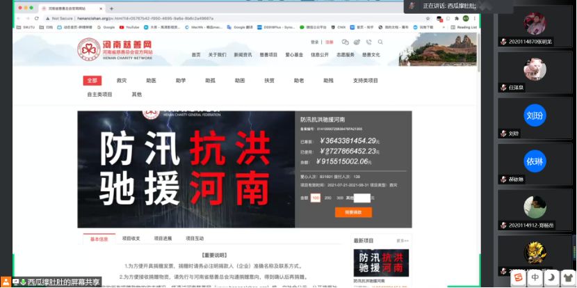 会议上,张明龙同志分享了他作为志愿者,参与救助名单统计核实工作的经历,通过他的描述,我们更真切地感受到了此次灾难的破坏力之大,很多人因此而流离失所甚至失去生命,同时感受到了救援工作的艰难、无法得到解救的被困人员的痛心。对此,党支部发起募捐,意在贡献出一份微薄的力量来帮助河南度过困难。
