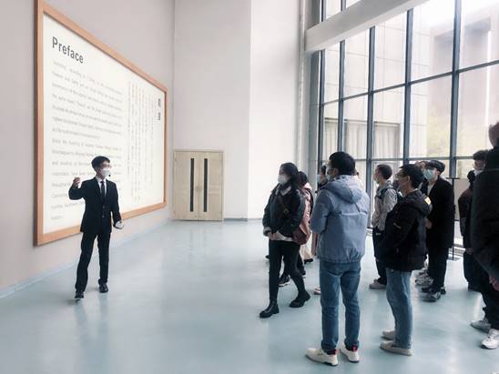 同学们分成两个组在讲解员的带领下有序进入校史馆。参观过程中同学们围绕在讲解员身边,认真聆听学校百年来的发展历程与荣誉成就。