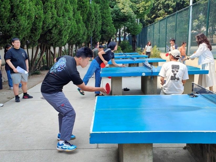 上午9点,本次比赛正式拉开帷幕。球桌上,同学们你争我夺、你攻我守,对战双方激情高涨,赛场气氛十分激烈。横拍、竖拍、吊球、抽球……选手们的每一次击杀都充满力度,令现场观众惊叹,赛场上不时传来热烈的喝彩声。
