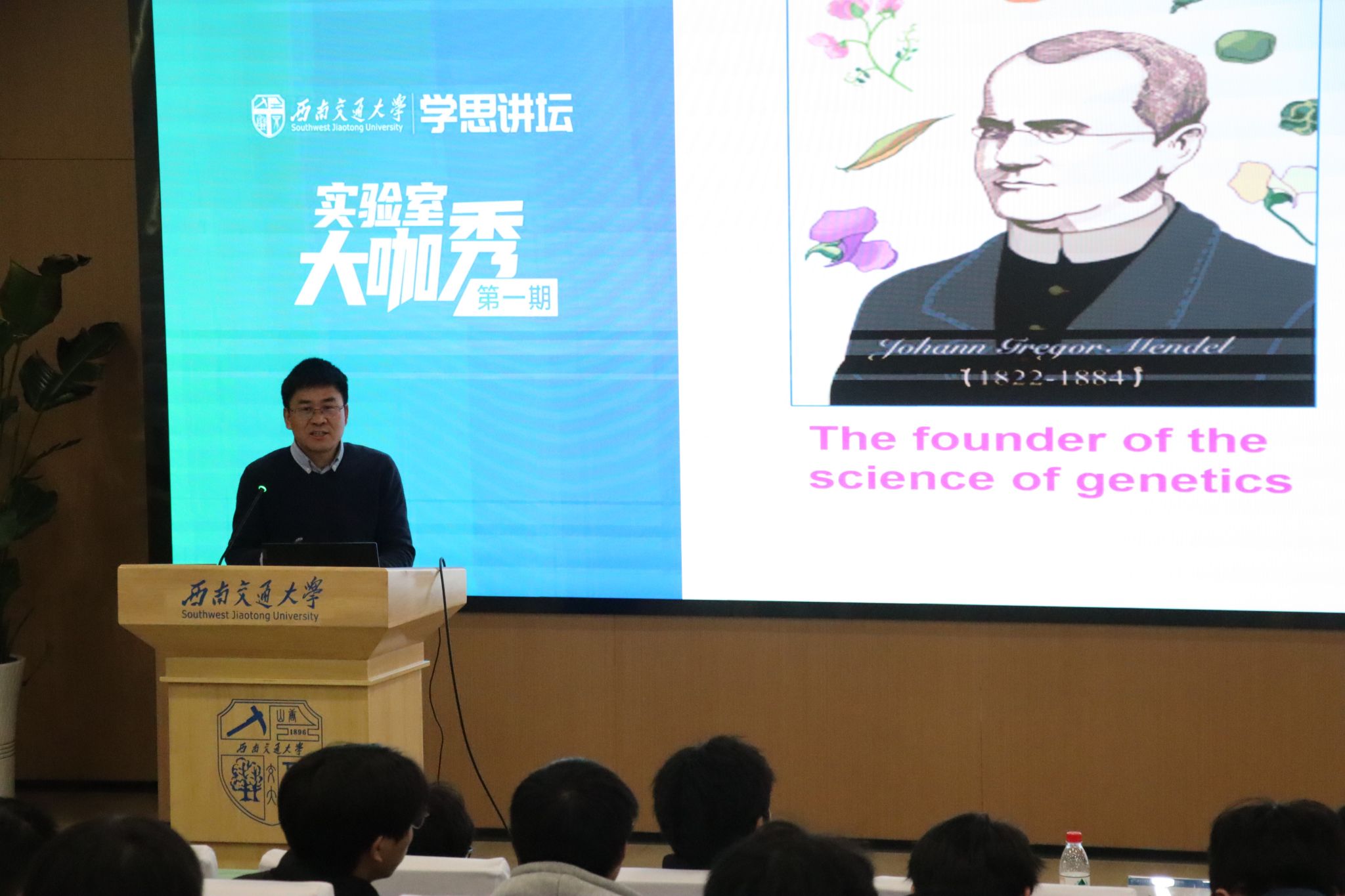 于4月3日成功举办学思讲坛暨“实验室大咖秀”活动(第一期)。活动特邀孟涛教授、张岚副教授、黄新河副教授三位学术大咖担任主讲嘉宾,围绕生物专业背景和生命科学前沿领域展开分享。活动由2024级本科生辅导员杨颖增主持,180余名本科生参与,现场互动热烈。