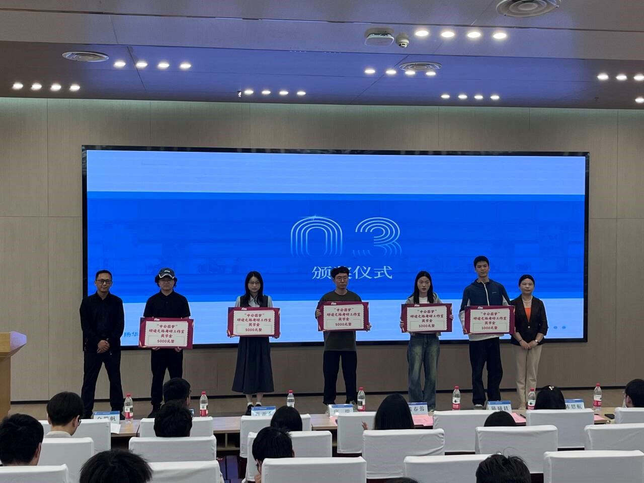 随后,招生就业处生涯教育与就业指导科科长陈曦轶宣读了2025年考研优秀营员名单。黄春蓉、廖瑞、陈曦轶、陈思航、蒋亚东和周桎宏分别为一、二、三等奖学金获得者颁奖。