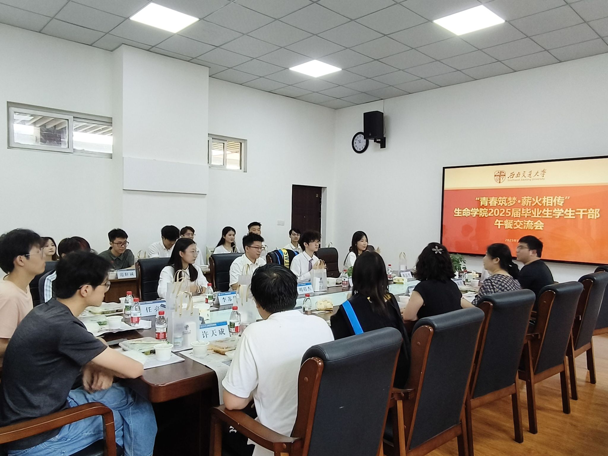 此次 “青春筑梦・薪火相传” 午餐交流活动,是一场温馨的毕业告别,更是一次青春传承的接力。学院 2025届的毕业生学生干部们,带着学院的祝福、老师的期许与同窗的鼓励,即将奔赴人生各领域。相信在未来的日子里,他们会以青春之姿在各自赛道发光发热,用实际行动续写学院荣光,让 “薪火相传” 的动人故事,在逐梦路上不断延展、熠熠生辉,成为生命学院精神传承中又一段佳话。