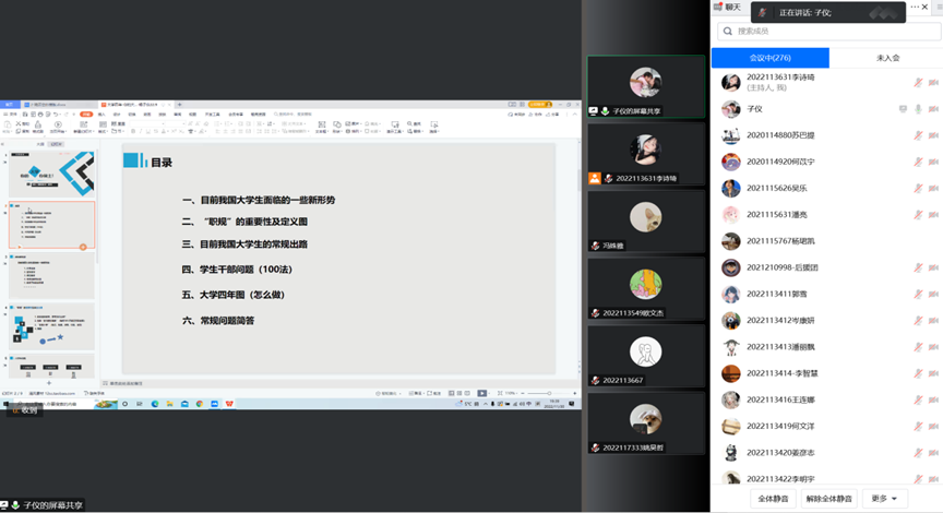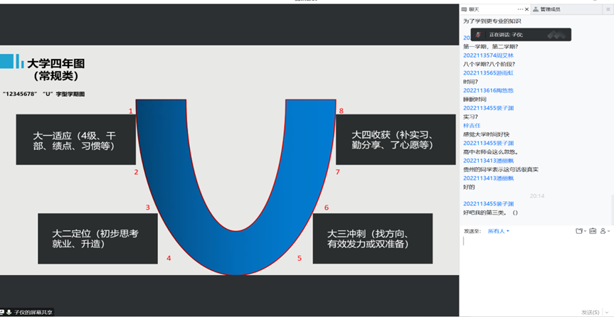 21:00,活动顺利结束。此次讲座不仅唤醒了2022级新同学的生涯意识,也帮助他们明确了本科期间学习生涯的方向。