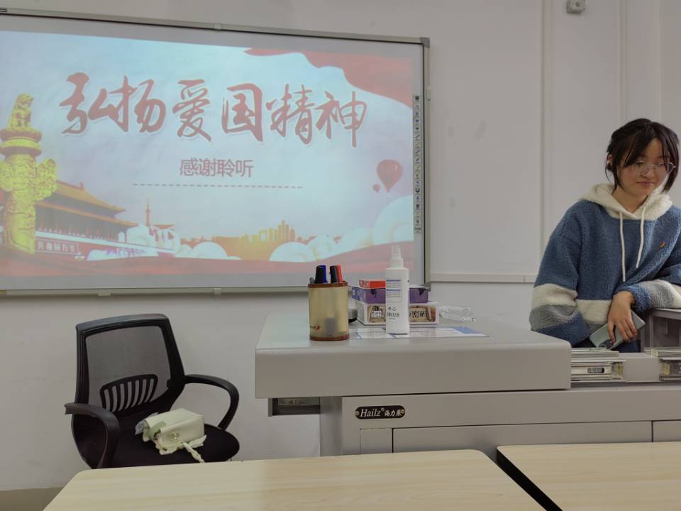在确认人员无误后,活动正式开始。会议伊始,团支书郑鲁川通过PPT向同学们讲述红色故事,弘扬爱党爱校意识,详细、认真地向同学们讲述了怎样爱国、爱党、爱校,让同学们明白了爱党爱校不是空话,应该投身实践。同学们也纷纷表示:“我们要心怀感激之情,时刻跟党走,牢记母校教诲,遵守校规校纪,脚踏实地,从搞好学习,全面发展自身做起。”