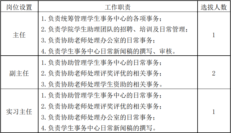 学生事务中心学生干部。具体通知如下: