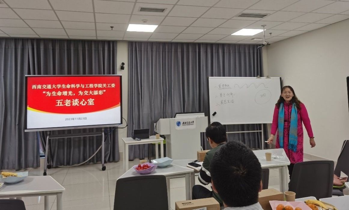 11月23日下午,生命学院党委、关工委、院工会在犀浦校区举办了“为生命增光,为交大添彩”教师工作坊主题活动。学院党委书记李卓慧,党委副书记、纪委书记、工会主席朱炜,副院长李遂焰,院长助理黄新河、华晶晶、王毅及学院部分教师参加本次活动,活动由朱炜副书记主持。