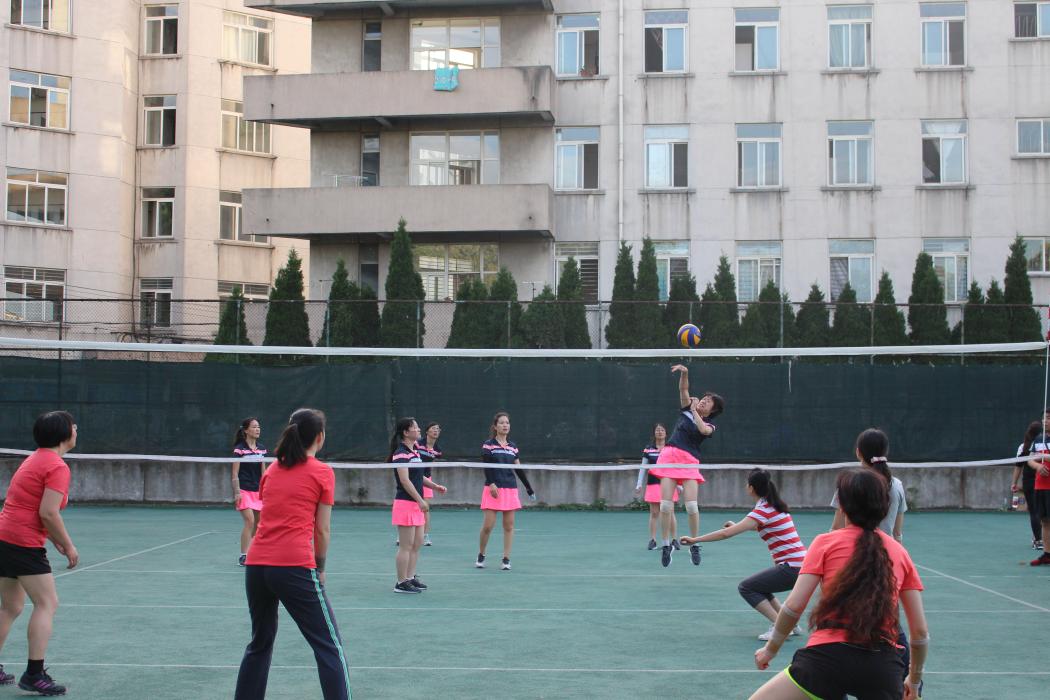 排球比赛中,生命学院女子排球队在党委副书记罗妍妍的带领下,迎战信息学院女队。
