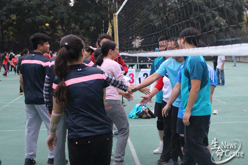 第二场比赛对方针对我方阵型不时暂停比赛调整战术,但生命学院的老师们沉着冷静,队长罗妍妍积极调度指挥,毫不动摇。双方比分呈拉锯态势。面对实力强劲的对手,老师们顽强防守,同时抓准时机进攻。一个个漂亮的传球令对手措不及防,赢得阵阵喝彩