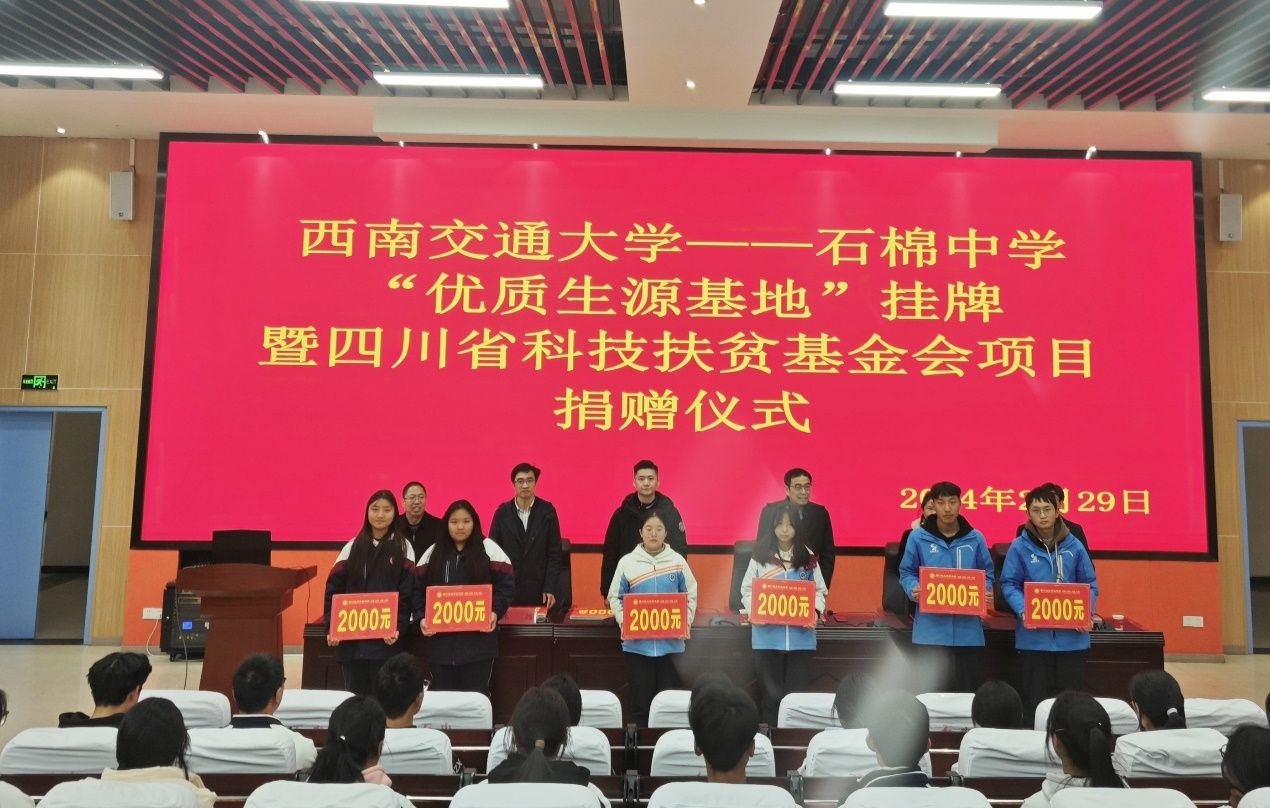 为石棉县中学授牌“优质生源基地”,四川省科技扶贫基金会为石棉中学的50名高中生捐赠10万元“寒门学子大学梦”项目助学金,黄新河副教授以《选择最重要》为题为石棉中学200余名高中学子开展专题报告,生命学院4名实践队员分别深入高三班级开展招生宣讲、高考辅导和咨询答疑活动。