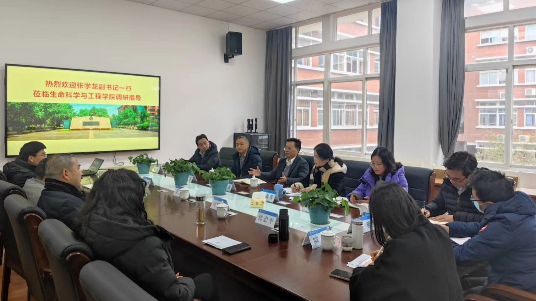 在听取学院工作汇报后,张学龙副书记充分肯定了生命学院近年来在改革建设发展中所做的努力,对学院科研成果、中外合作办学、学生工作等方面取得的成绩和特色亮点进行了充分肯定。他表示,本次校领导班子分工调整后,他主动争取联系生命学院,就是希望能为学院发展和师生办实事、解难题,全面、全力为学院的高质量发展做好服务工作。生命学院基础较好,教书育人方面也做得很好,学院内涵发展也积累到一定的阶段,学院师生精气神得到较好的提升。希望学院党政班子团结一心,讲规矩、立规矩,汇集一切有利于学院发展的力量,着力破解学科、人才、办学资源分散等制约学院发展的难题,以学校新一轮改革为契机,带领全院师生把学院建设好、发展好。