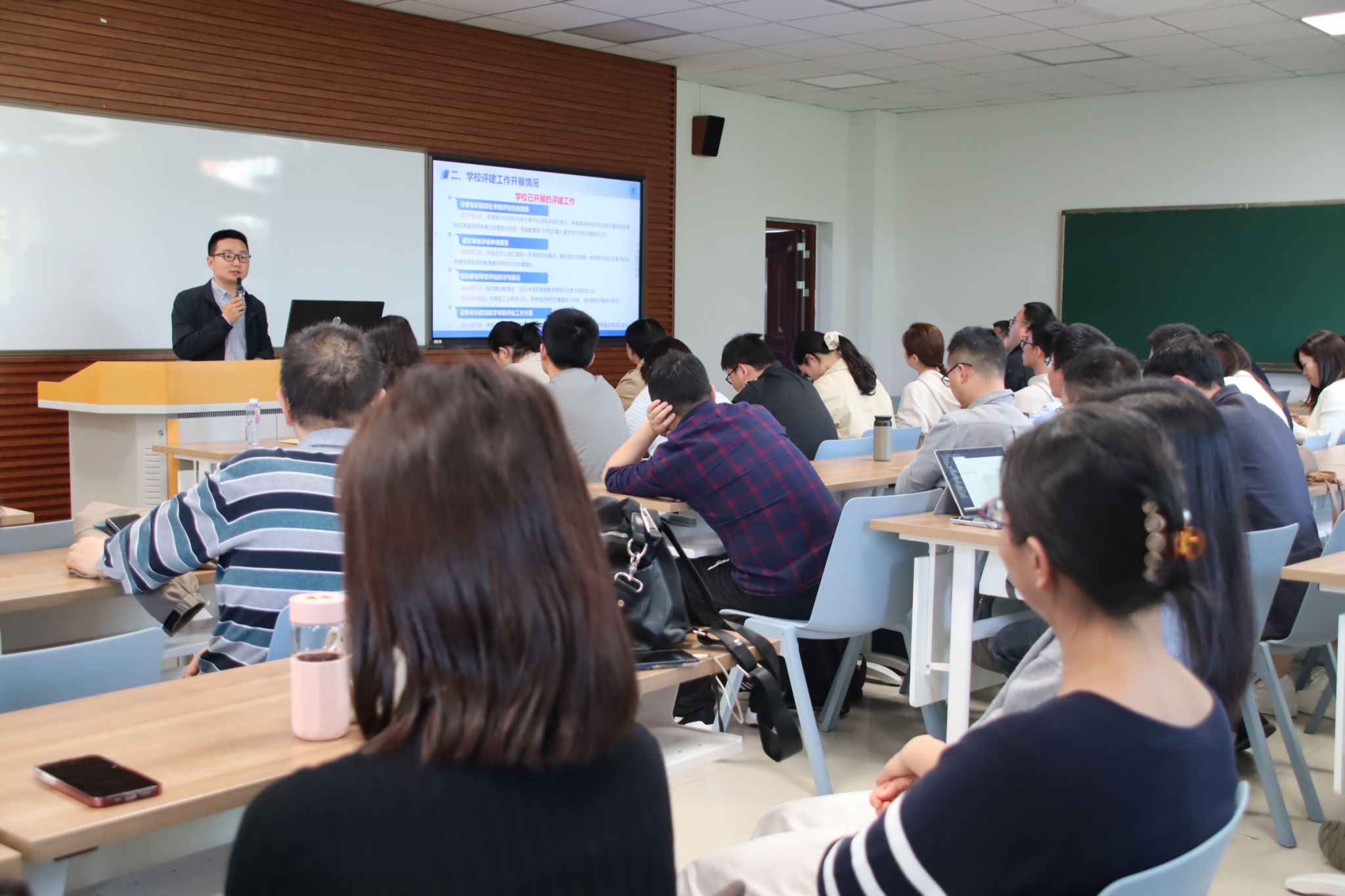 人才培养工作再上新台阶,本次会议特别邀请了学校教务处教质量评估办公室主任冷伟老师为全体教职工作本科教育教学审核评估培训。冷伟主任从本科教育教学审核评估要点、学校评建工作开展情况、迎接新一轮审核评估教师何为等3个方面做了详细阐述,特别强调了新一轮审核评估的评估指标及突出特点,并将与教师相关的事项做了逐一解答。