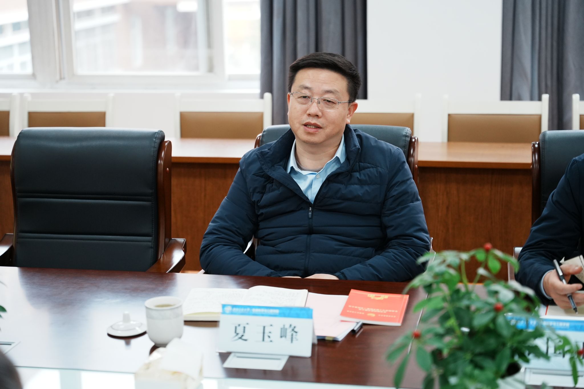 夏玉峰与参会人员进行深入交流。他充分肯定了学院24年办学历程中取得的成绩,对学院党委提出的未来五年工作计划表示赞同。同时也指出学院现阶段发展存在的主要问题,并对本届领导班子提出工作要求,希望领导班子多思考、多谋划,带领全院师生齐心协力,继续奋斗往前走。