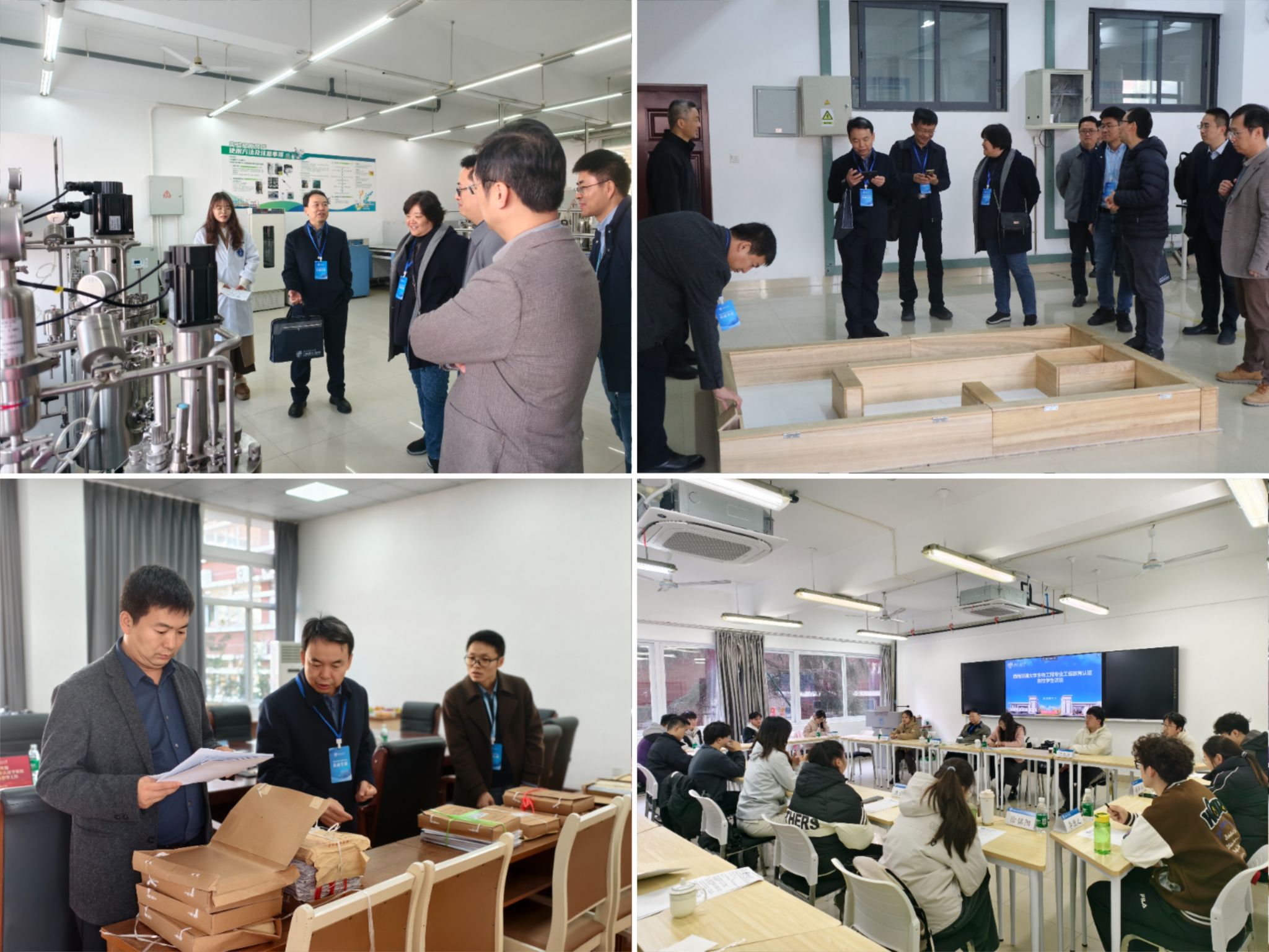 考查期间,专家组实地走访工程训练中心、生物工程实验室、生物实验室、基因工程实验室及携光生物制药等校内实验教学场所与校外实习基地;细致查阅了课程资料、毕业设计(论文)和实习实践报告等教学资料以及相关管理制度文件;分别与管理人员、在校学生、专业教师、校友及用人单位代表进行了座谈交流;并深入课堂听课,全面了解专业教学与人才培养情况,就自评报告中存疑问题作了进一步核实。
