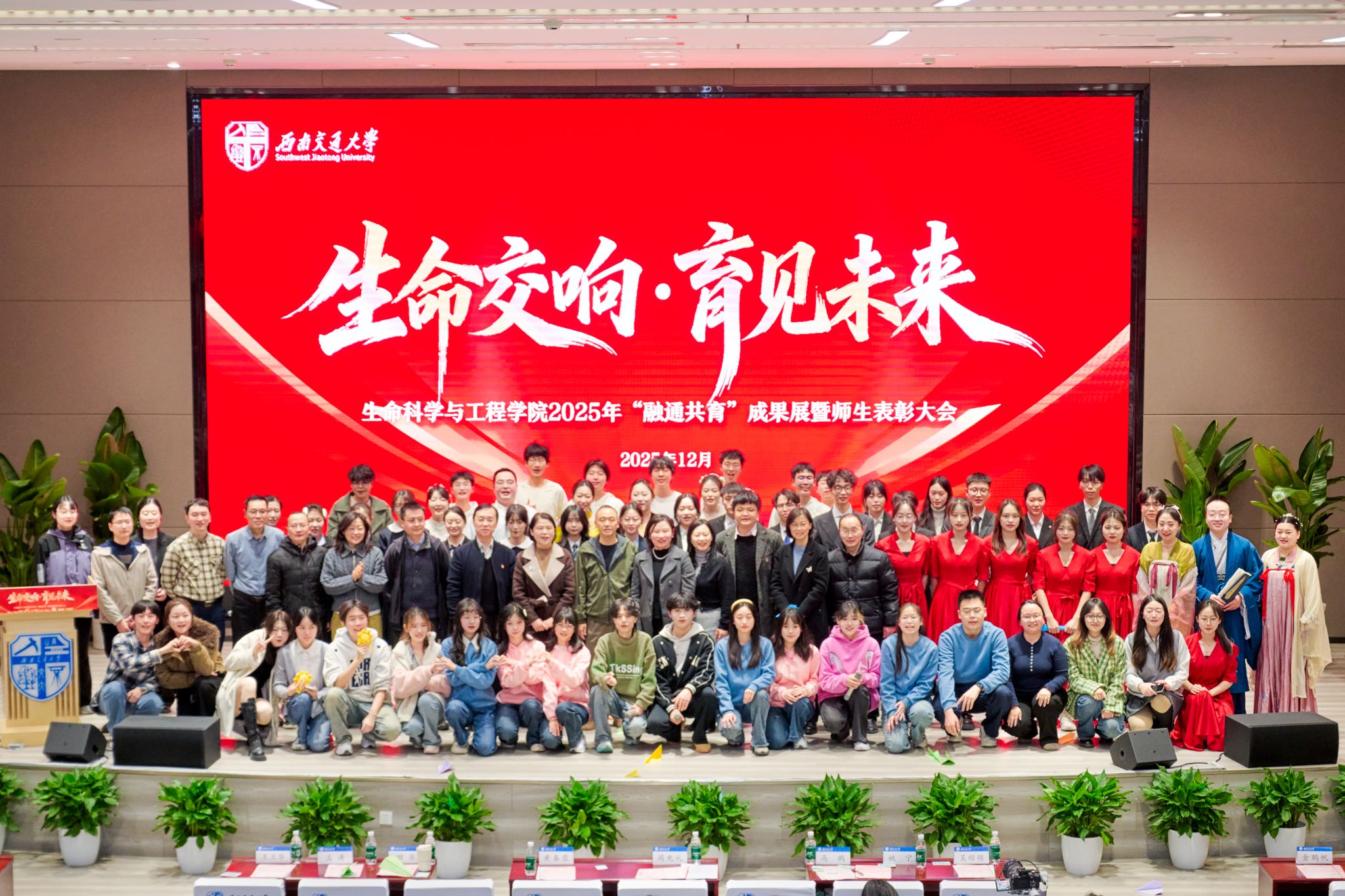 2025年“融通共育”育人成果展暨师生表彰大会在犀浦校区双一流会议中心举行。学院院长周先礼、党委书记黄春蓉、副书记高鹏、学院“融通共育”专项指导老师、教师代表、学生代表等400余人齐聚一堂,共同回顾学院年度育人成果,表彰先进典型,凝聚奋进力量。