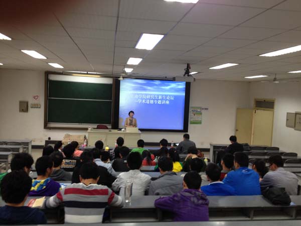 学术道德规范》,就大家关心的引用、抄袭、剽窃等概念做了详细阐释,并通过列举一些虚构科研成果、一稿多投与重复发表、虚假署名与挂名等不道德的学术现象介绍了学术造假的危害。最后,他强调,同学们一定要有科学精神,本着实事求是的态度做学问,坚决抵制不良之风,争做一名合格的研究生。出席会议的王书会副书记就学术道德问题进行了简单地补充。他通过发生在身边周围的真人真事强调了规范学术道德的必要性,同时对同学们提出了要求:一定要恪守学术道德规范,不弄虚作假,专心科研,努力回报社会!