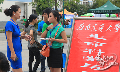 今天是新生报到高峰期,截至20:00,生命学院262名新生中已有226人顺利完成注册。面对突发事件:四川绵阳的新生何佑纲由于背包被扒,丢了录取通知书,老师和志愿者带领其开具教务处证明,顺利解决问题。