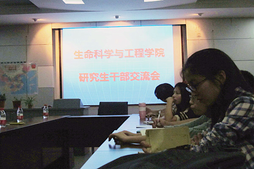 研究生干部交流会在电气馆3609会议室顺利召开,出席本次交流会的嘉宾有前任生命学院研究生会主席刘凡,副主席陈惠、刘宗瑛以及2012级研究生二班班长宋明珠,全体新任研究生会干部。会议由现任院研会主席邱瑾怡主持,与会新老研究生干部就工作经验进行交流和分享。