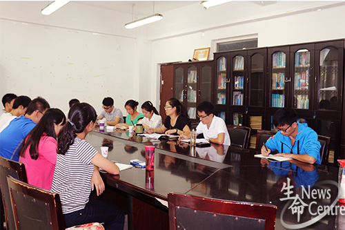 领导班子就届时各方面细节于10月12日15:23在X2105准时开始了一场别开生面的研讨会。本场研讨会由生命学院党委副书记罗妍妍主持,团委书记崔健,团委副书记孔琳、李慧明,13级辅导员高鹏、魏源成,团委办公室主任谭富明,生命学院五大团学组织代表及两位年级助理也积极参与其中。