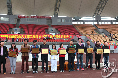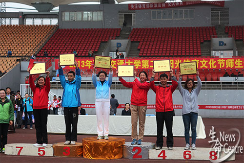 生命学院全体师生运动员全力以赴,坚持不懈,最终教职工以总分78分赢得了第五名;学生获得第四名,总分99分。生命学子用欢呼和掌声表达了他们的喜悦。接着校团委副书记曹乔公布体育风采奖,生命学院荣获该奖。入场式生命学院也获得了三等奖的好成绩。2012至2013体育十佳优胜团体中生命学院获得了学生乙组第二名,总分83.47。生命学院学生冯皓获得了十佳个人奖项。最后,进行颁奖仪式。