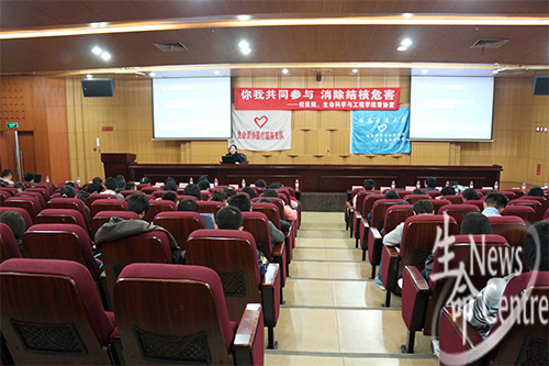 预防结核病讲座于11月29日晚在图书馆二号报告厅举行。参加本次讲座的嘉宾有校医院院长贾全芬老师、张卉老师,校医院内科糜瑛主任,校医院预防保健科高俊容主任以及生命学院团委副书记高鹏老师。校医院内科糜瑛主任担任本次讲座的主讲人。
