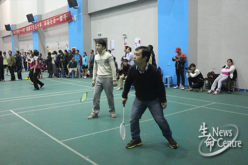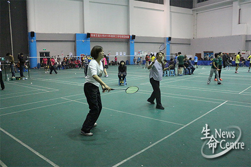2014年教职工羽毛球团体赛。今晚比赛依然分为男双,男女混双和女双三种形式,比赛规则实行单淘汰赛制,每场比赛三局两胜。生命学院今晚对战香蕉视频