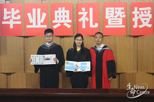 最后,生命学院教授委员会为2015届本科毕业生和硕士研究生毕业生授位。“翳唐山,灵秀钟;我学院,声誉隆……”激昂的校歌回响在大厅里,将毕业生们满怀对未来憧憬的心情表露无遗。授位结束后,工作人员开始播放生命学院香蕉视频精心制作的毕业E册。