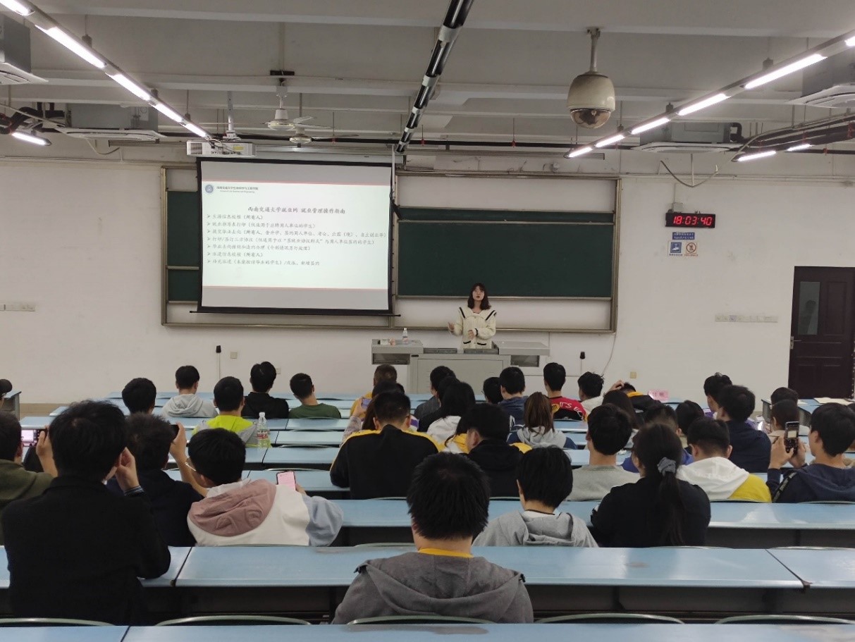 下午16:00,讲座正式开始。首先由封顺副院长从为什么要读研、研究生应该怎么样学习、近年研究生的报考情况、研究生招生程序、2022年学院硕士招生情况等多方面向同学们介绍了考研相关事宜,同时也给同学们讲解了关于研究生报考、复试等重要环节的注意事项。封顺副院长指出:“不论是什么样的选择,你的选择即为你的选择,一定要为自己的选择付出最大的努力。”