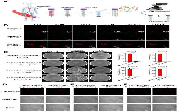 图6. TBTCP-PMB工程化噬菌体对临床血液样本的检测。