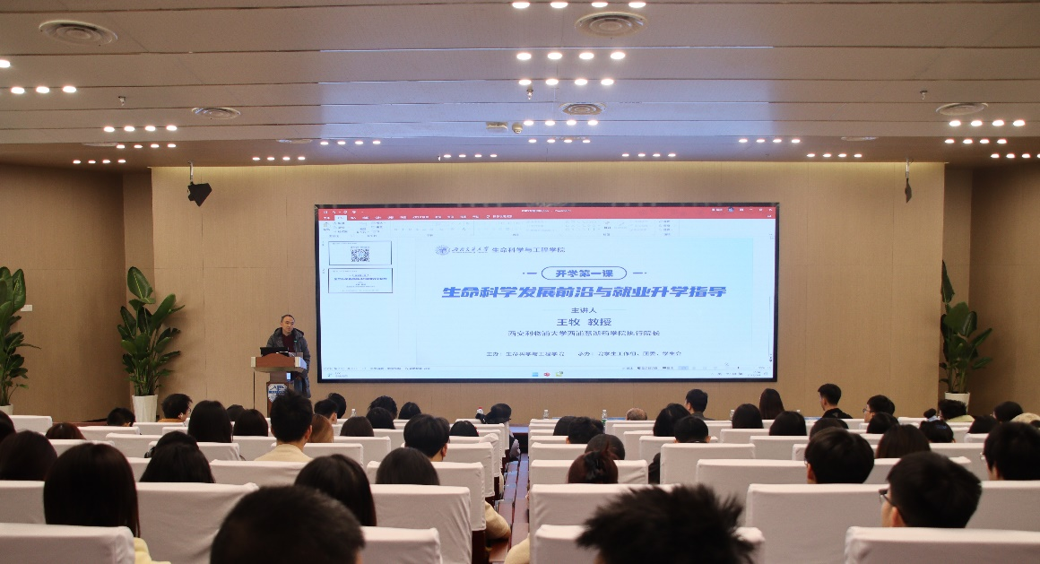 同学们进行生命科学发展前沿解读与就业升学指导。学校研究生院常务副院长、学院院长周先礼教授主持报告会,学院党委副书记朱炜、学工组辅导员老师及近300名学生参加报告会。