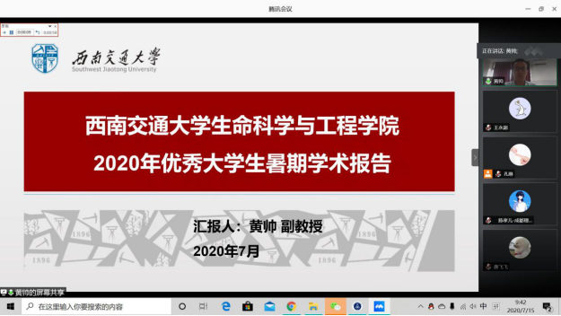 To promote the construction of life sciences in Southwest Jiaotong University , promote exchanges of outstanding college students across the country , and optimize the source structure of graduate students in our school , the 2020 Summer Academic Summer Camp for Outstanding College Students in the School of Life Science and Engineering of Southwest Jiaotong University will be held from July 14 to 7 . It was held smoothly on the 16th. Due to the epidemic, this summer camp was all conducted in the " cloud network " , with introductions to the hospital , introduction to degree programs , academic lectures , personal demonstrations by campers , and teacher-student exchanges .