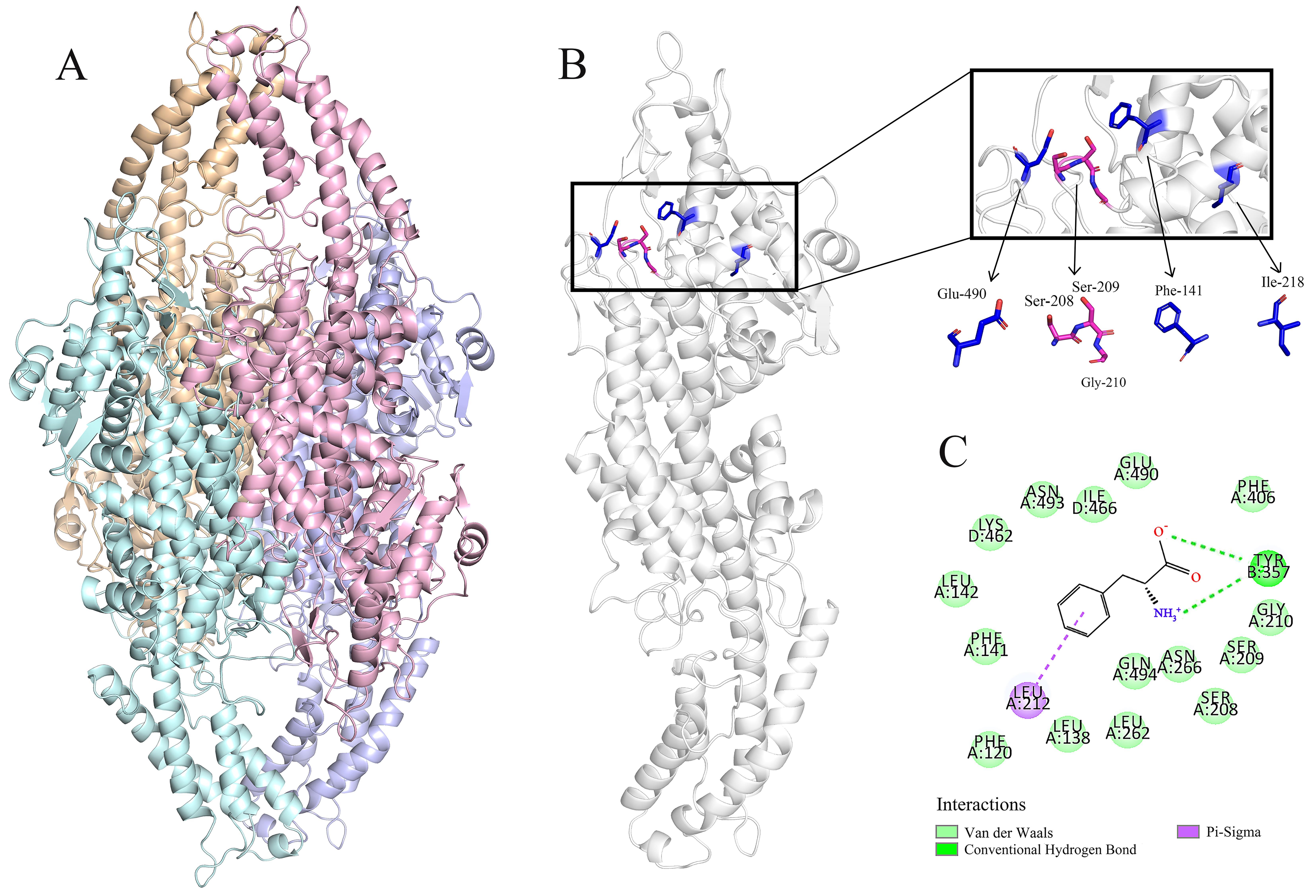 苯丙氨酸解氨酶(Phenylalanine ammonia-lyasePALEC4.3.1.5)催化苯丙烷代谢途径的第一步反应,催化苯丙氨酸发生非氧化脱氨形成反式肉桂酸。PAL作为苯丙烷类化合物代谢的第一个限速酶,能够调控木质素、黄酮、异黄酮与生物碱等物质的合成代谢。然而, PAL基因是否能够参与植物干旱胁迫响应的正向证据仍然较少,因此,本研究基于暗紫贝母转录组数据,发现了3PAL成员,其中FuPAL1含有非典型的Ser-Ser-Gly三联体。通过在大肠杆菌中异源表达,纯化获得FuPAL1重组蛋白,酶学性质分析发现FuPAL1对苯丙氨酸具有较高的底物偏好性及催化效率;并利用同源性建模和位点突变的方法证明Phe141 Ser208Ile218Glu490FuPAL1发挥催化作用及选择性的关键位点;也证实Ser-Ser-Gly三联体发生自身环化,形成MIO辅基参与酶的催化过程。