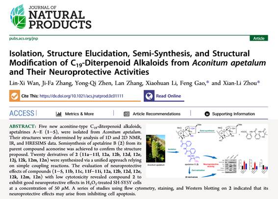 该研究不仅涵盖了天然产物研究全过程—提取分离、结构鉴定、半合成、衍生化、结构修饰及活性研究,也为自乌头属植物中寻找新型抗AD先导化合物奠定了基础。