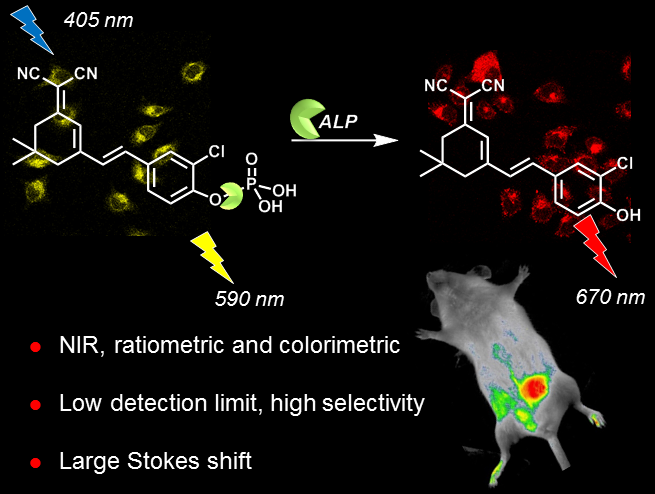 碱性磷酸酶(ALP)是许多生物体组织中的一种关键同工酶,具有催化磷酸酯水解和磷酸化的功能。人体内的ALP浓度水平被认为是多种疾病的监测指标,包括心力衰竭、肾功能恶化、肝功能不全等。因此,建立一种简单、有效且适用于生物样品的检测方法显得格外重要。
