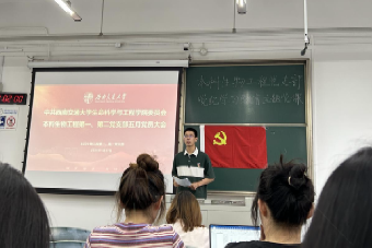 围绕党纪学习教育,结合学院特色,本科生物工程第一党支部本学期将开展“强化纪法教育,筑牢思想根基”校级示范性学生党支部特色活动。2024年5月27日晚19:00,该活动启动仪式在犀浦校区X2331举行。学院党委副书记、纪委书记朱炜为支部党员讲授党纪学习教育专题党课,支部书记潘星宇主持活动启动仪式及党员大会。