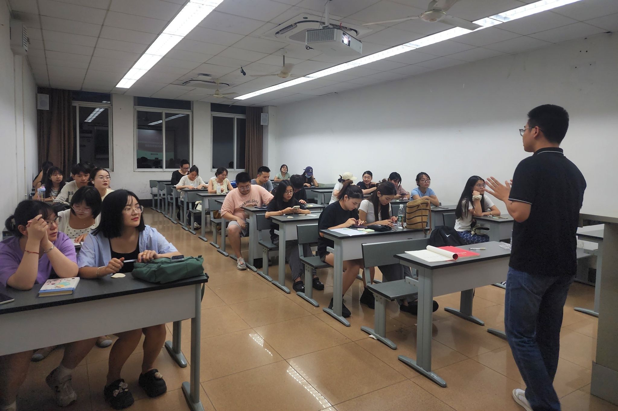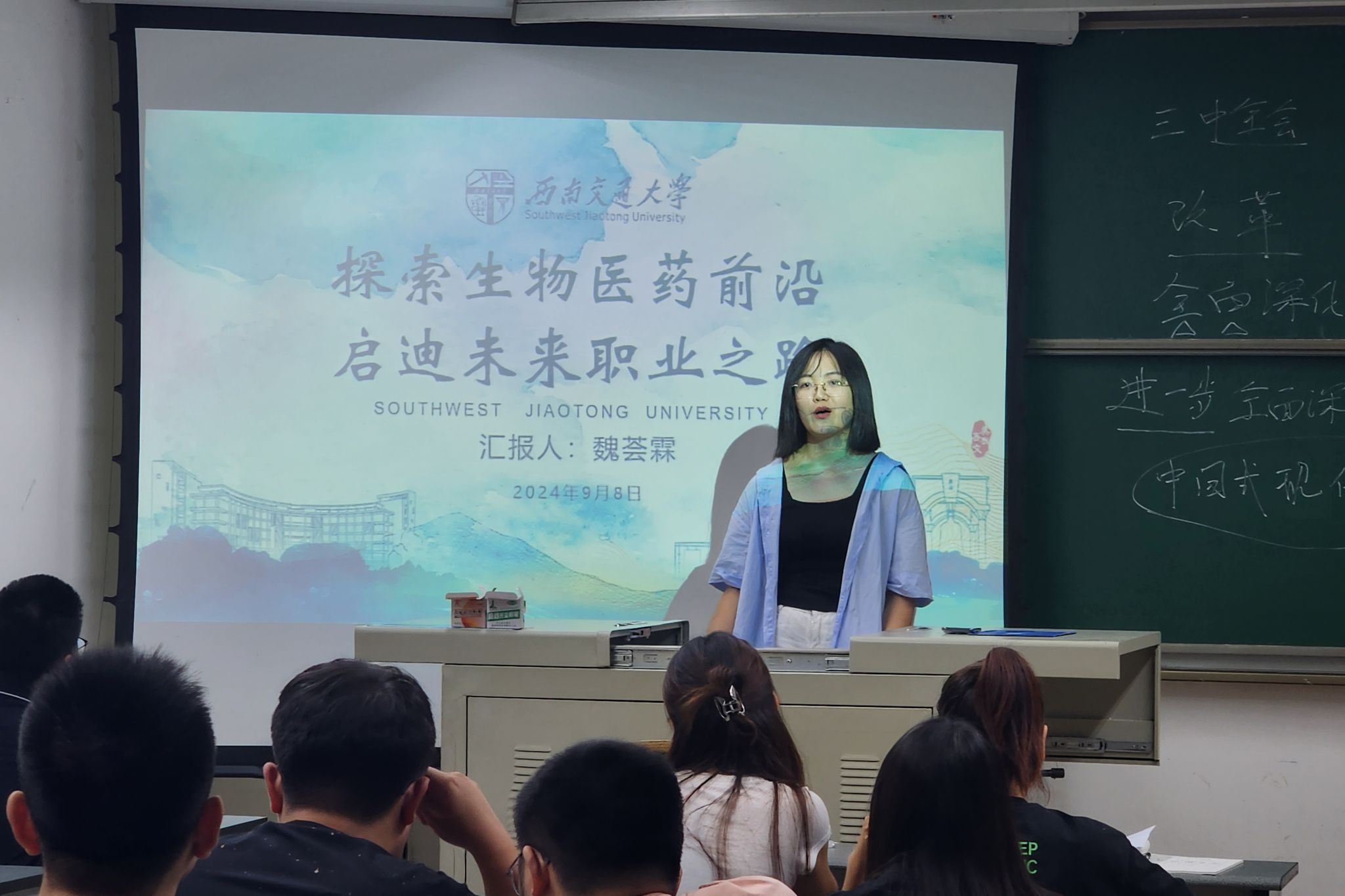 9月8日晚上,研究生第四党支部于九里校区逸夫楼4304A教室开展主题党日活动。活动内容包括:深入学习贯彻党的第二十届中央委员会第三次全体会议精神,分享交流暑期社会实践见闻感悟,“心怀皓月,致敬恩师”感念师恩教师节特别活动。本次会议由党支部书记黄斌翰老师主持,支部全体成员及2024级新生党员、入党积极分子参与。