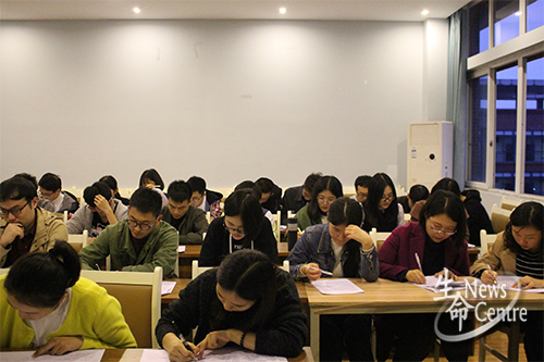 党建知识竞赛于九里校区4517和犀浦校区X6502同时顺利举行。竞赛分为党员和党支部委员分别答题两个层次进行,学院全体学生党员、学生支部委员和指导老师参加了本次集中竞赛。