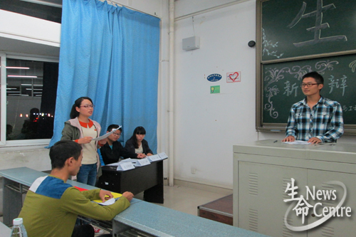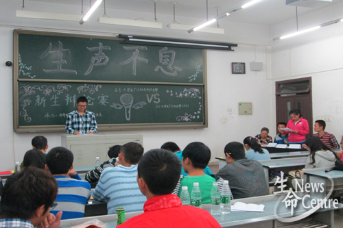 “生声不息”新生辩论赛半决赛于X7202展开,正反双方分别为生命学院13级生物工程二班、四班,本次辩题为——论大学生广泛交友之利弊。到场嘉宾有材料科学与工程学院辩论队队长李文浩、数学学院辩论队队长姜伟楠、艺术与传播学院辩论队教练宋英铭、生命学院前辩论队队长于亚荣及教练鞠艳妮。