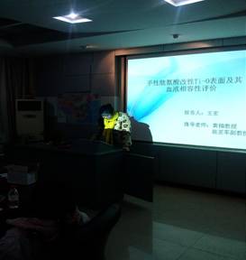 该班成员分为六个不同专业,分别来自生物实验室、药学实验室和材料实验室。本次交流会在播放以支部成员在实验室的照片制作而成的电子相册中开始。交流会上,王宏、宋明珠等五位同学以PPT的形式与会同学们展示了他们的研究方向和研究内容,同时与大家分享了他们在实验室的趣事、劳逸结合的娱乐活动等等。同学们专业方向各不相同,党通过讲解和现场互动,同学们开拓了眼界、增进了了解。其中来自材料实验室的王宏同学以《手性胱氨酸改性Ti-O表面及其血液相容性评价》的研究报告把同学们带入了纳米材料的研究领域,还与同学们展开了热烈的讨论。在五位同学讲解之后,大家纷纷表示获益良多,值此毕业设计开题之际,同学们觉得需要更加努力。